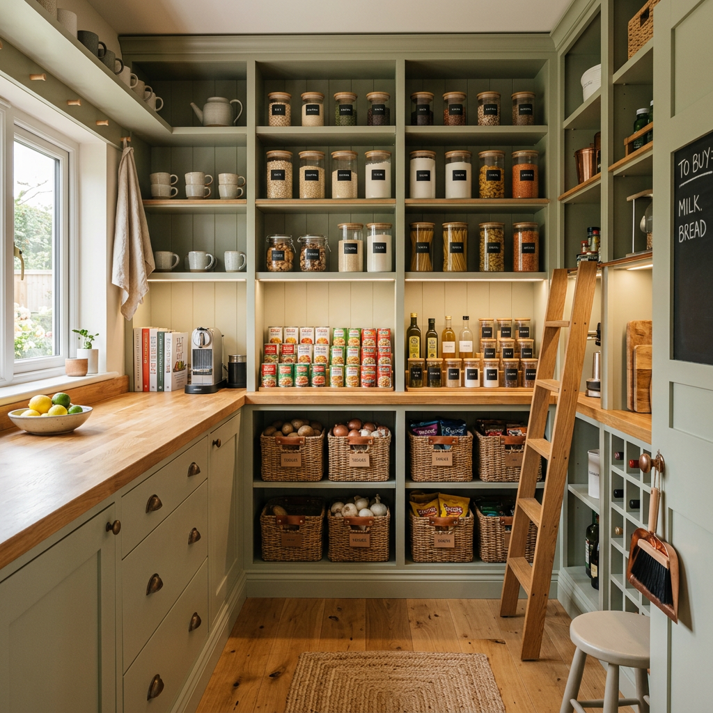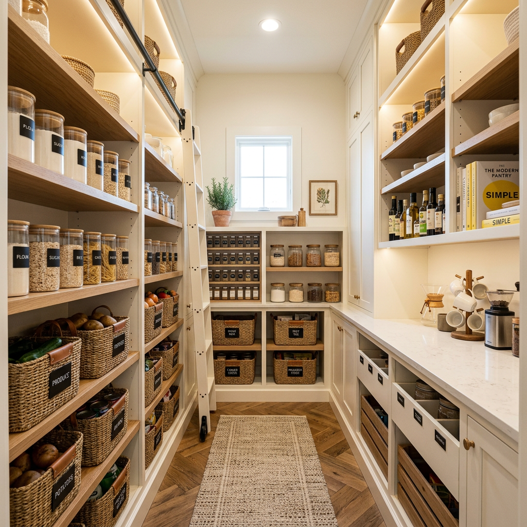 Choose from a curated selection of high-quality materials, including solid wood, laminate, and wire shelving. We offer a wide range of paint and stain options to match your décor. All surfaces are selected for durability and easy cleaning, ensuring your pantry looks great for years to come.